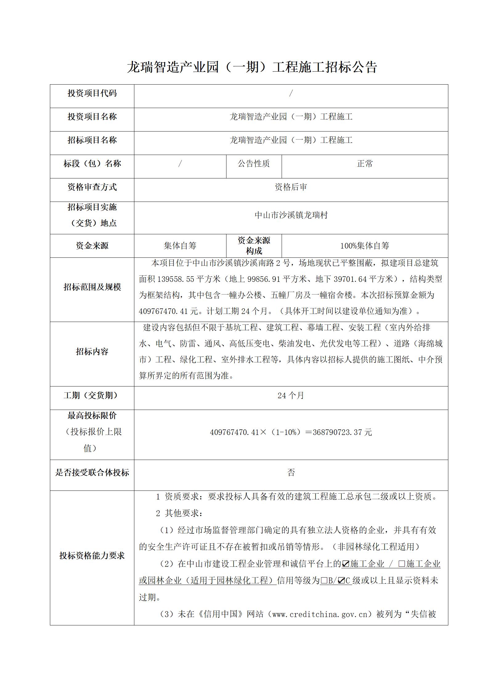 龍瑞智造產(chǎn)業(yè)園(一期)工程施工招標公告